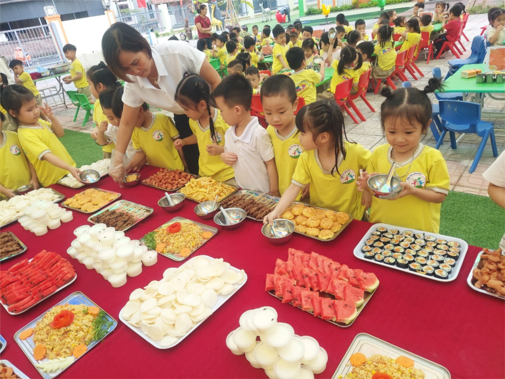 Qua buổi trải nghiệm : “ Tiệc Buffet của bé” giáo dục trẻ biết tự phục vụ bản thân, biết lấy thức ăn vừa phải ở từng món ăn để còn thưởng thức những món ăn khác và học được văn hóa xếp hàng người trước người sau, ăn lịch sự, từ tốn. Sau khi lấy thức ăn, các bé tự thưởng thức những món ăn ngon tuyệt mà mình tự chọn lựa. Tổ chức tiệc buffet cho trẻ là một hoạt động bổ ích giúp cho trẻ tiếp cận với những văn hóa, kỹ năng trong cuộc sống hàng ngày, mang đến cho trẻ những trải nghiệm hoàn toàn mới mẻ, giúp trẻ tự tin hơn trong giao tiếp...