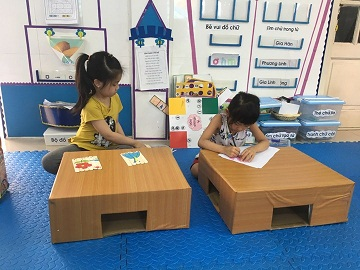 Khi ứng dụng phương pháp Montessori tôi thấy Phương pháp Montessori đặc biệt thích hợp cho hoạt động góc. Vì vậy, sau khi các cháu đã được học kiến thức mới trong giờ hoạt động chung, cô có thể cho cháu hoạt động góc theo hình thức Montessori dựa vào cơ sở vật chất của địa phương, với những cháu không nắm vững kiến thức trong hoạt động chung sẽ được cô hướng dẫn lại từng trong giờ hoạt động góc để cháu chậm sẽ lĩnh hội những kiến thức mới một cách nhẹ nhàng hứng thú mà không gò bó.