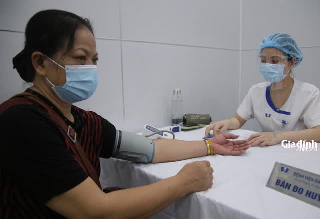 Đo huyết áp trước khi tiêm vaccine COVID-19. Ảnh: Lê Bảo