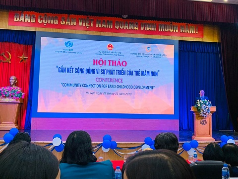 Ngày 28/11/2019, trường Cao đẳng mẫu giáo TƯ kết hợp với Quỹ nhi đồng liên hợp quốc và Bộ GD&ĐT tổ chức Chương trình hội thảo khoa học " Gắn kết cộng đồng vì sự phát triển của trẻ mầm non". Theo giấy mời của trường Cao đẳng mẫu giáo TƯ, có đ/c hiệu trưởng- bí thư chi bộ trường mầm non Kim Lan vinh dự được tham gia buổi hội thảo này.