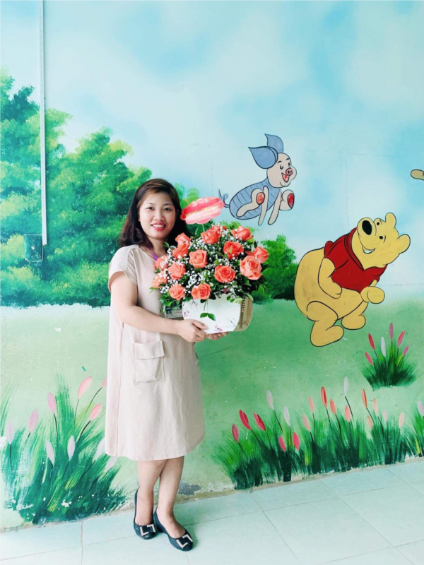 Một cô giáo sinh năm 1987, với tác phong nhanh nhẹn, hoạt bát, thực lòng tôi vô cùng ngưỡng mộ. Với nhiều năm gắn bó với nghề cô nuôi dạy trẻ chị đã chèo lái rất nhiều thế hệ bé thơ. Cách dạy của chị không hề rập khuôn mà luôn luôn đổi mới, luôn tìm tòi, học hỏi chính vì thế mà nhiều năm trong nghề chị luôn là giáo viên dạy giỏi của trường và đã đạt Giải Nhất giáo viên dạy giỏi cấp huyện năm học 2019-2020. Với một giáo viên trẻ như tôi, được chị chỉ bảo tận tình, tỉ mỉ trong những năm đầu đứng lớp là 1 sự may mắn. Bên cạnh chị, tôi được học hỏi rất nhiều, không chỉ là về chuyên môn mà còn về cách đối nhân xử thế với đồng nghiệp, với phụ huynh và đặc biệt là đối với các bạn nhỏ. Nhìn cách cô chăm sóc, dạy bảo các con như một người mẹ hiền dạy dỗ đứa con ruột của mình tôi mới thấy để trở thành một nhà giáo thật sự không hề dễ dàng.